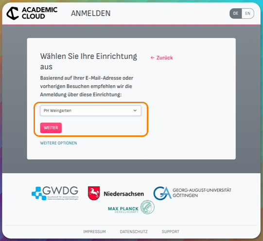 Um mit der generativen KI zu chatten, können Sie sich (nach Absolvierung des KI-Pflichtkurses der PH Weingarten!) auf https://chat-ai.academiccloud.de/ per Shibboleth mit Ihrem PH-Account einloggen. Die dafür nötigen Schritte sind im Folgenden beschrieben: