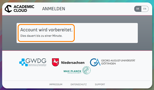 Eventuell müssen Sie kurz warten, bis Ihr Account für Chat AI vorbereitet wird. Es geht dann automatisch weiter.